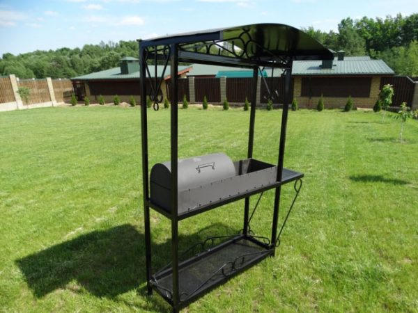 Мангал с крышей. Красивый и очень удобный мангал. Предусмотрено два стола для тарелок и кастрюль. Снизу есть удобная дровница.