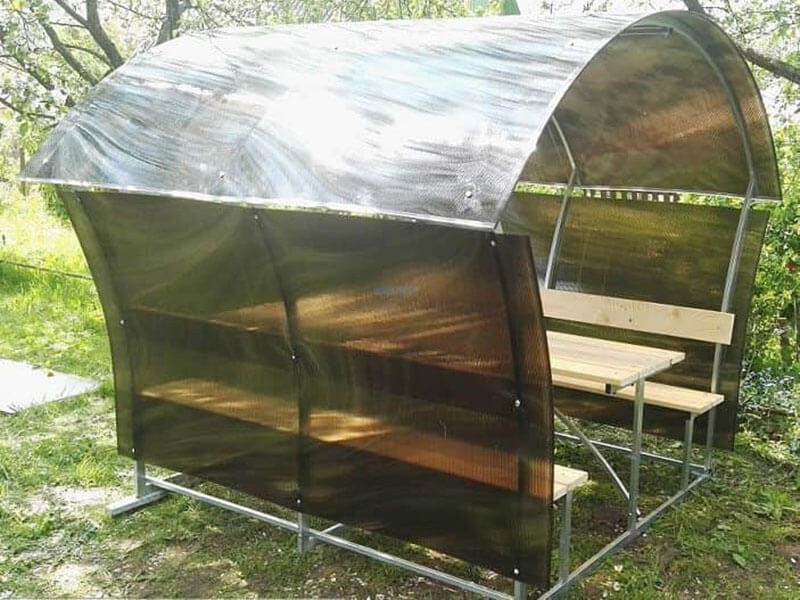 Каркас беседки изготовлен из оцинкованной сварной трубы 20х20 мм и собирается с помощью болтов и гаек.