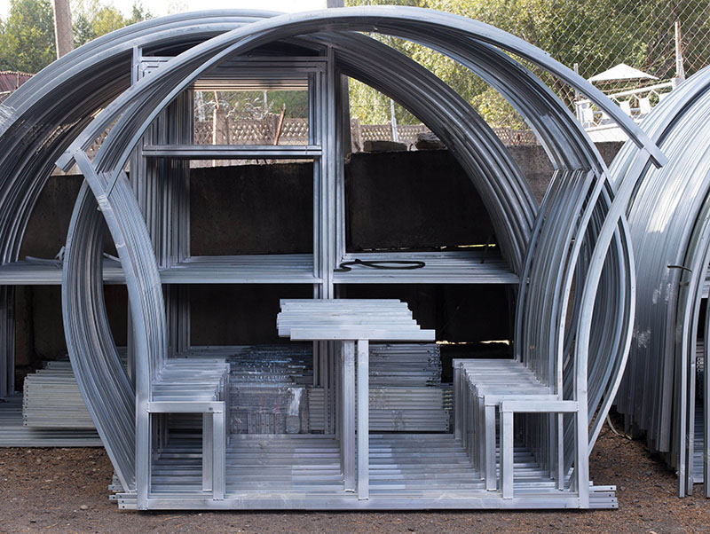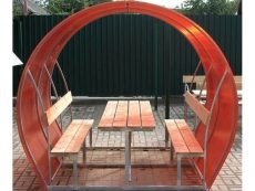 В комплект входит вся необходимая фурнитура. Вместительность беседки — до 12 человек.