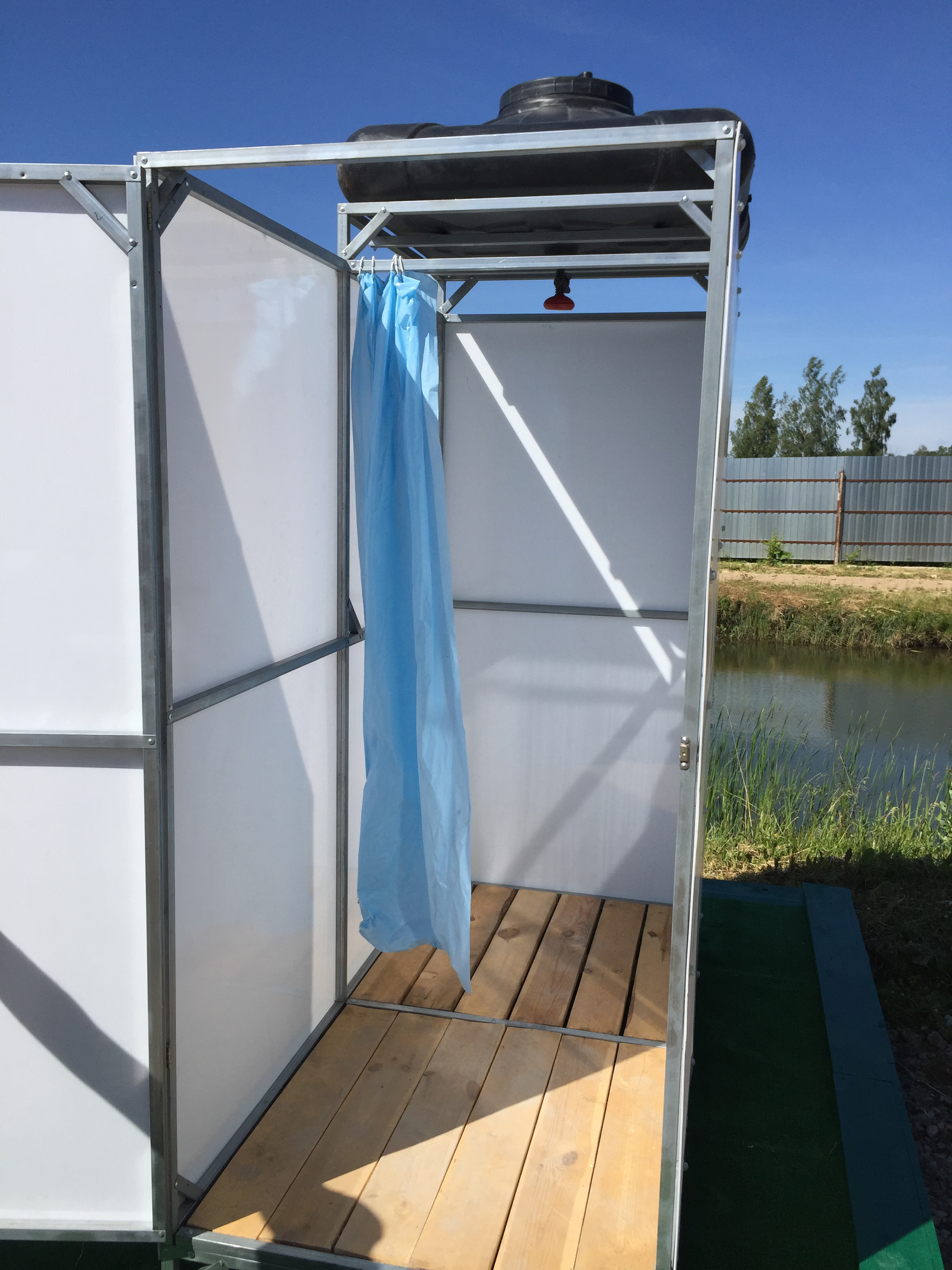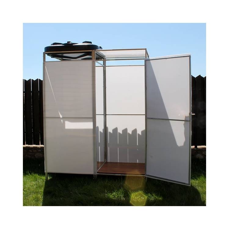 Новейшая разработка Российского производства. Каркас создан специально, что бы не ржавел и его не приходилось разбирать на зиму. Победитель 3х подряд агровыставок. Каркас приходит в полусобранном виде(даже двери навешены), что облегчает сборку. Пользоваться душем с подогревом при отсутствии на участке центрального водопровода это действительно удобно. Вы проведете время на даче не только с пользой, но и с максимальным комфортом.